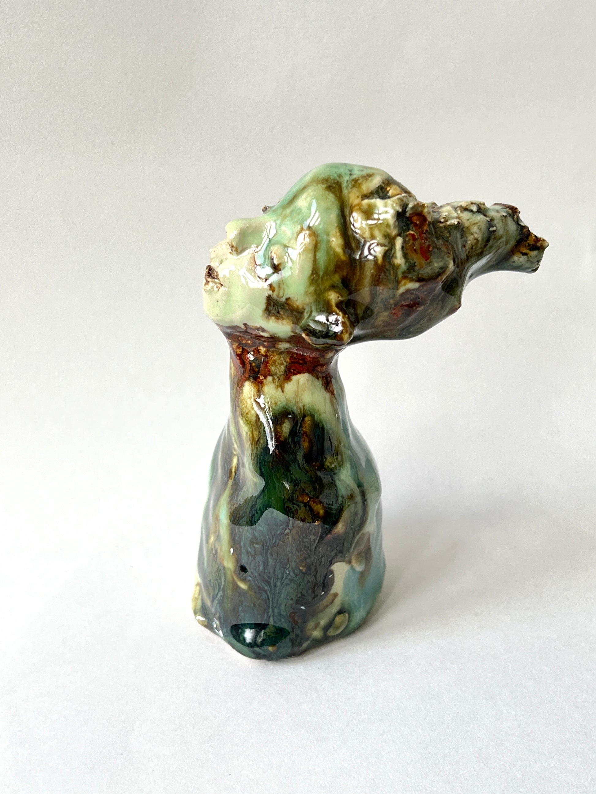 Håndlaget i steingodsleire, brent og glasert.