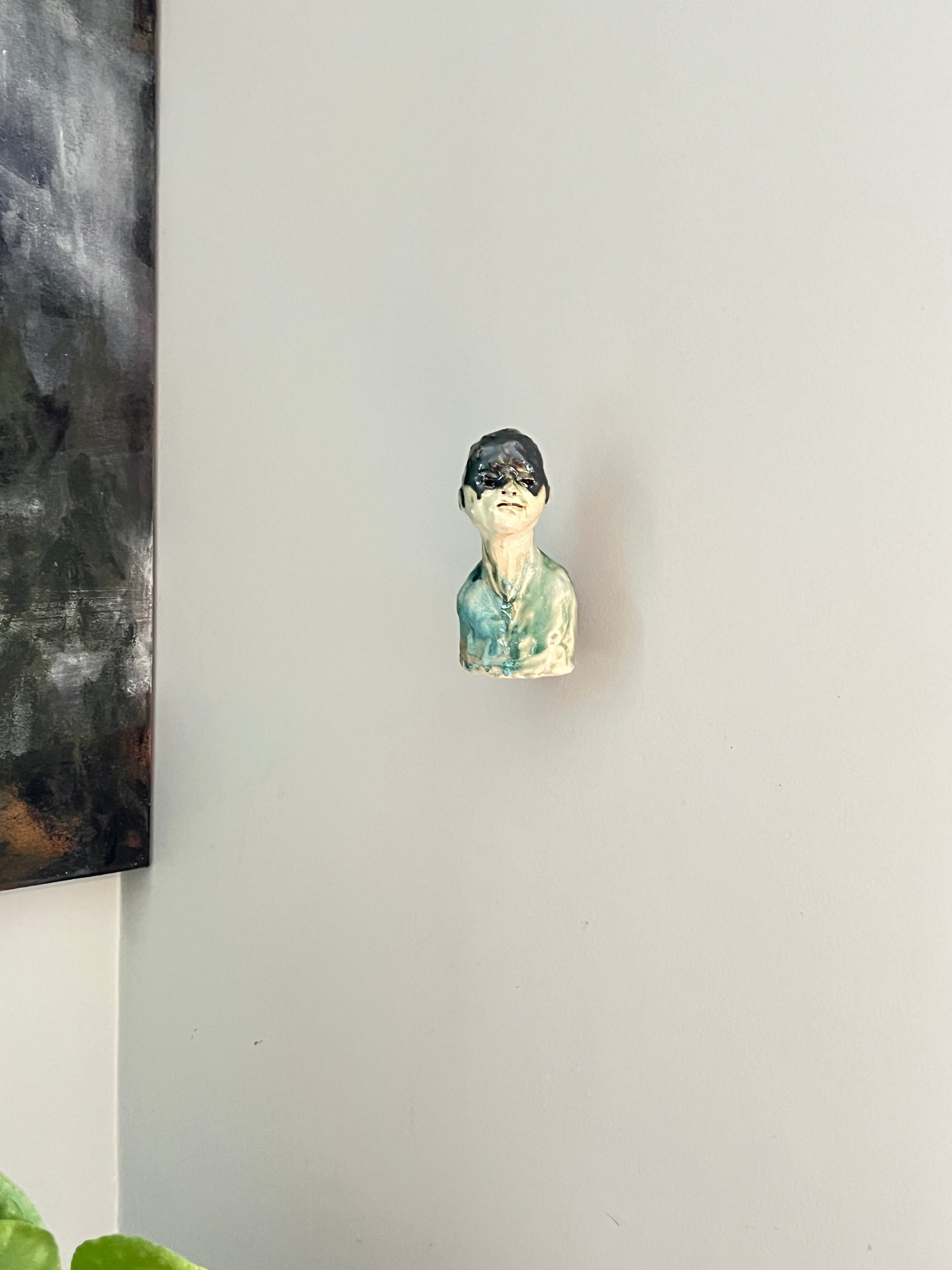 Glasuren beskytter som skjold, blikket som våpen. Han ser verden – men lar den ikke trenge helt inn.